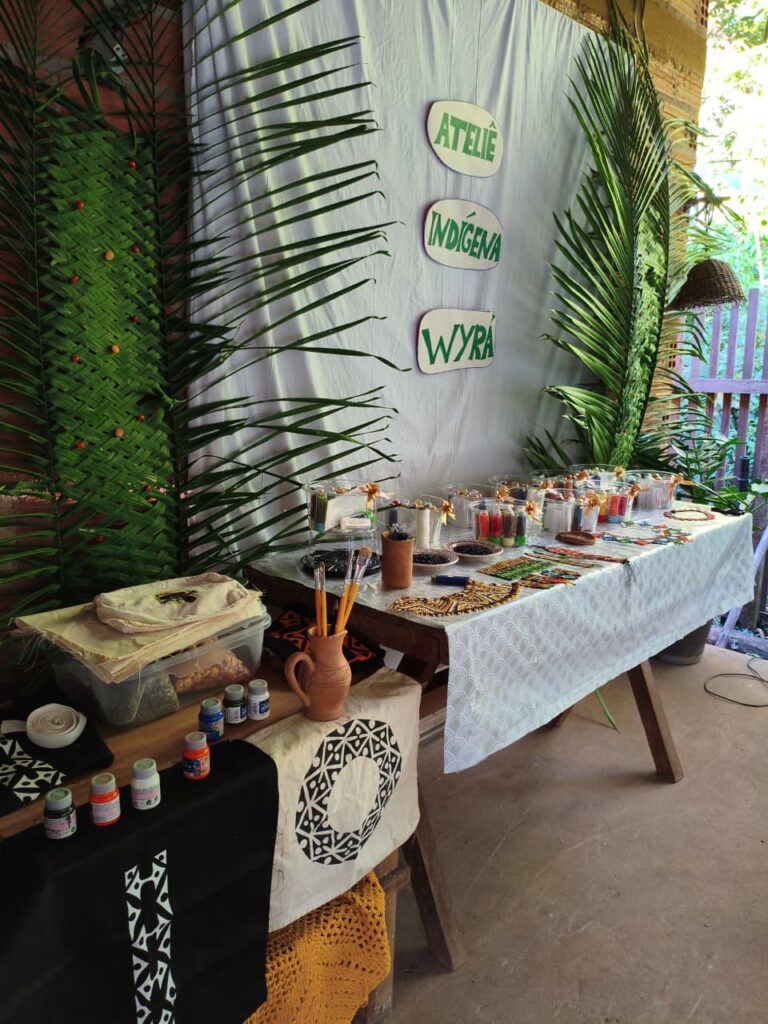 Un grupo de diez mujeres se capacitó, a través de talleres, en el trabajo con semillas nativas, pinturas naturales y abalorios tradicionales. Ellas aprendieron y compartieron técnicas de creación de artesanías inspiradas en la gráfica y simbología Kumaruara.