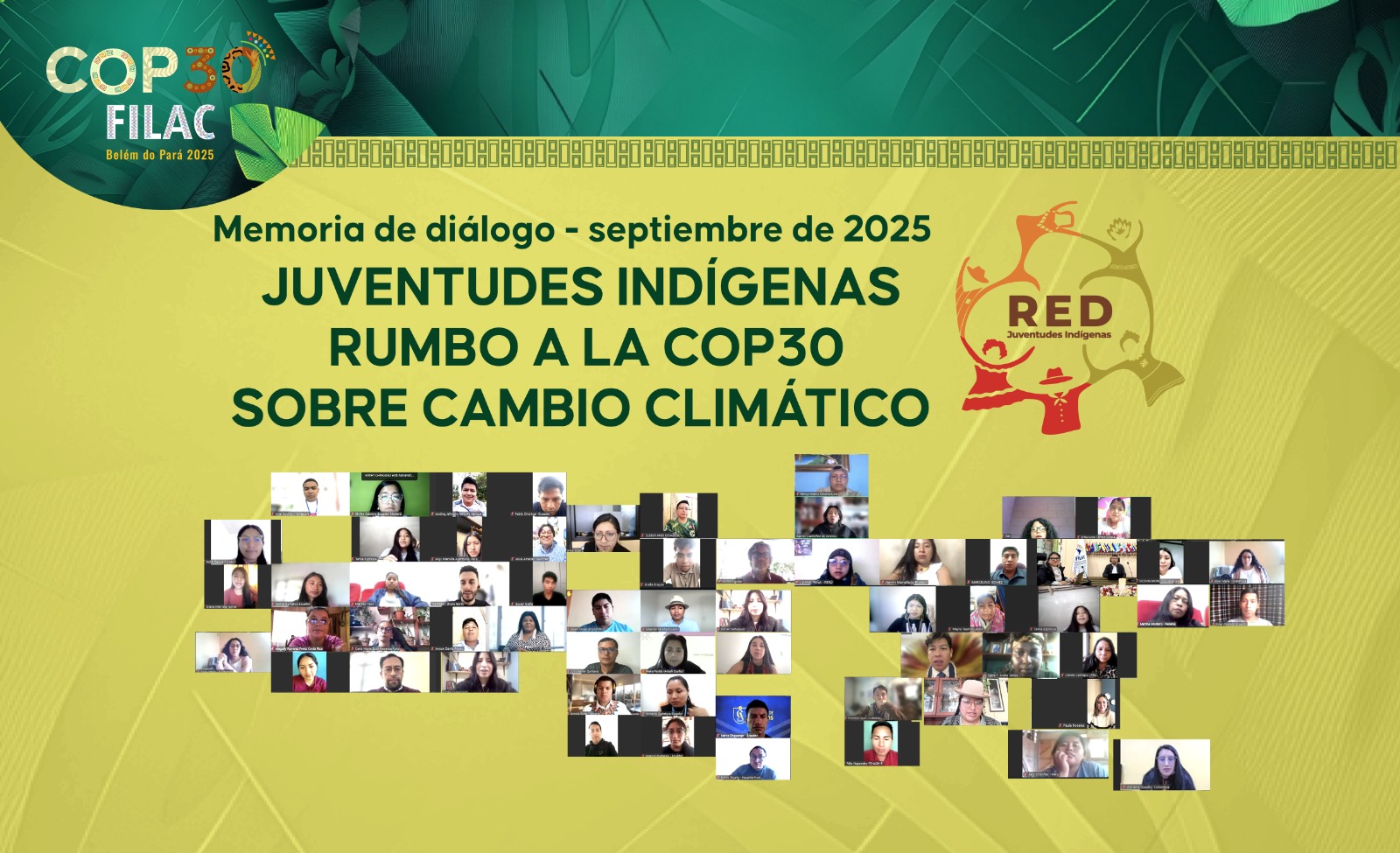 El “Diálogo de Juventudes Indígenas camino a la COP30 sobre Cambio Climático” se llevó a cabo el 10 de septiembre de 2025 a través de la plataforma Zoom. Esta iniciativa fue organizada de manera conjunta por la Red de Jóvenes Indígenas de América Latina y el Caribe, el Fondo para el Desarrollo de los Pueblos Indígenas de América Latina y el Caribe – FILAC y OXFAM.